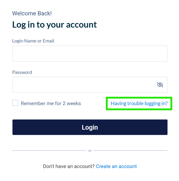 - If you are a current HMA member but have never logged in before, then you already have an account. Since an account has already been created for you, DO NOT click on the “Create Account” button. Instead, click on the “Having trouble logging in?” link.